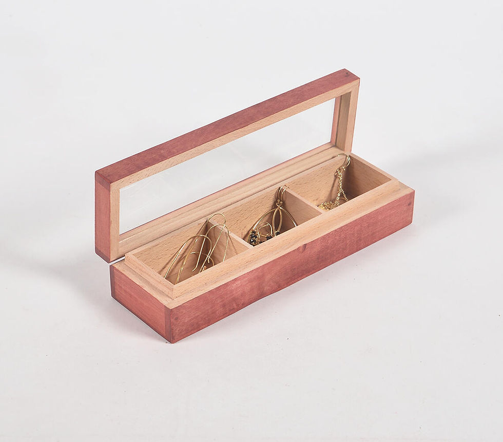 Some taller boxes have doors with hooks for necklaces and bracelets. Others let you lay these pieces in drawers. Some people store theirs in a pouch and place the pouch in a box, too.