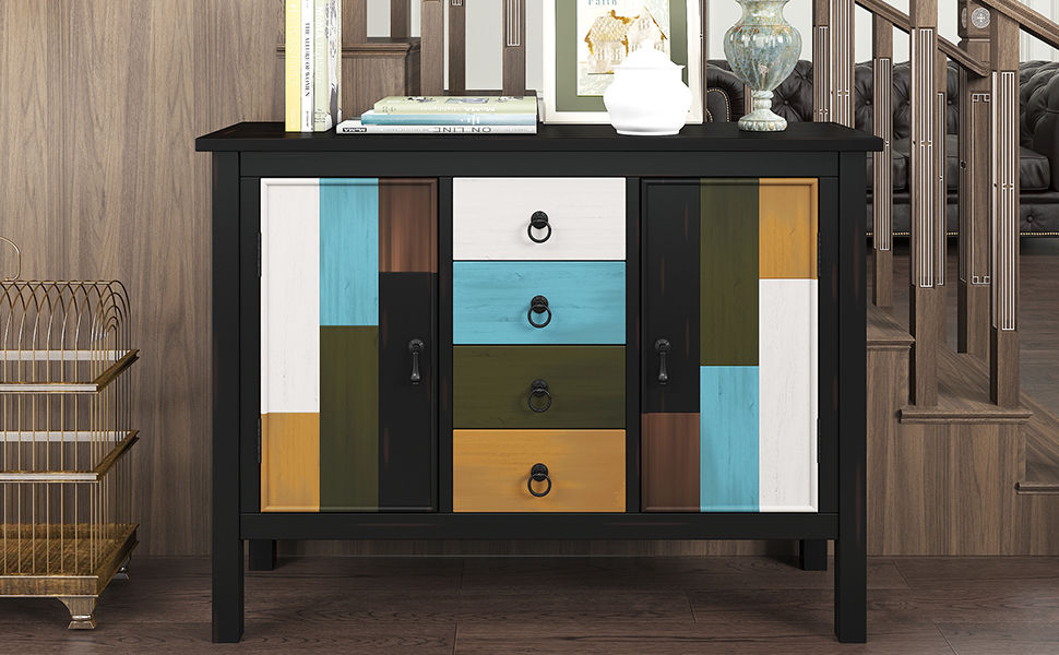 Manhattan Comfort Tudor 53.15 Sideboard with 4 Shelves in Black and Maple Cream