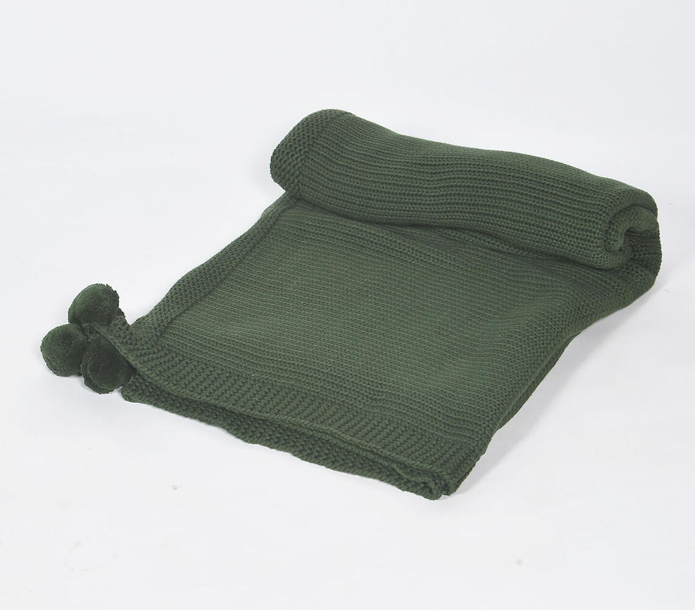 For a handmade look, opt for knitted throws crafted with 100 percent acrylic. These blankets, available in several shades, are yarn dyed to create vibrant, long-lasting color. Other yarn-dyed knitted throws are available, some constructed with pure polyester.